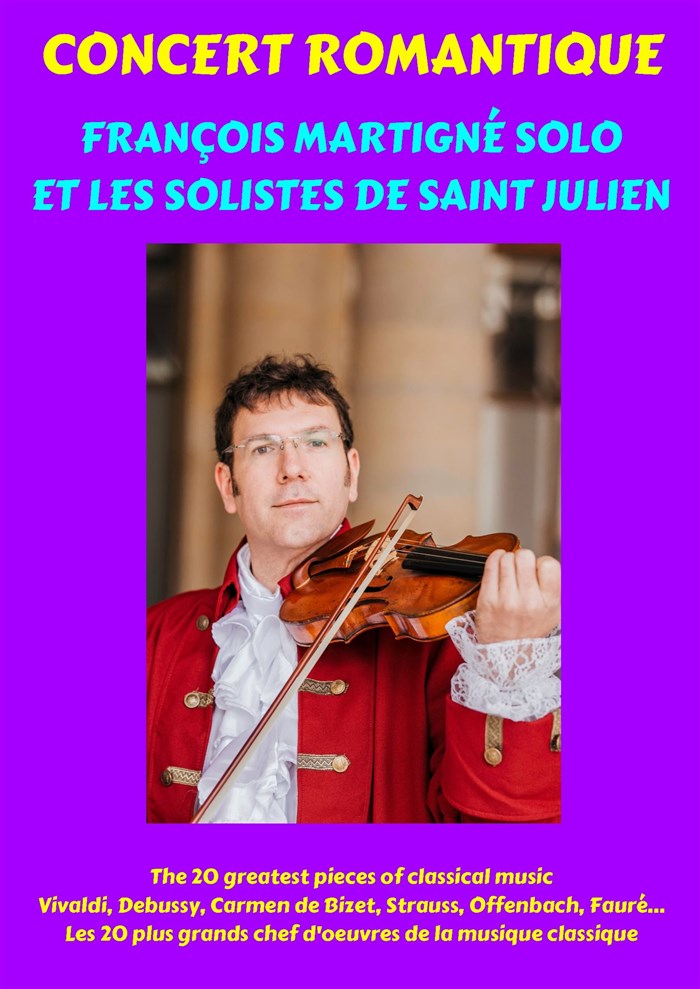 Accompanied by his string ensemble, with a harp, François Martigné revisits the famous pieces of the classical repertoire.