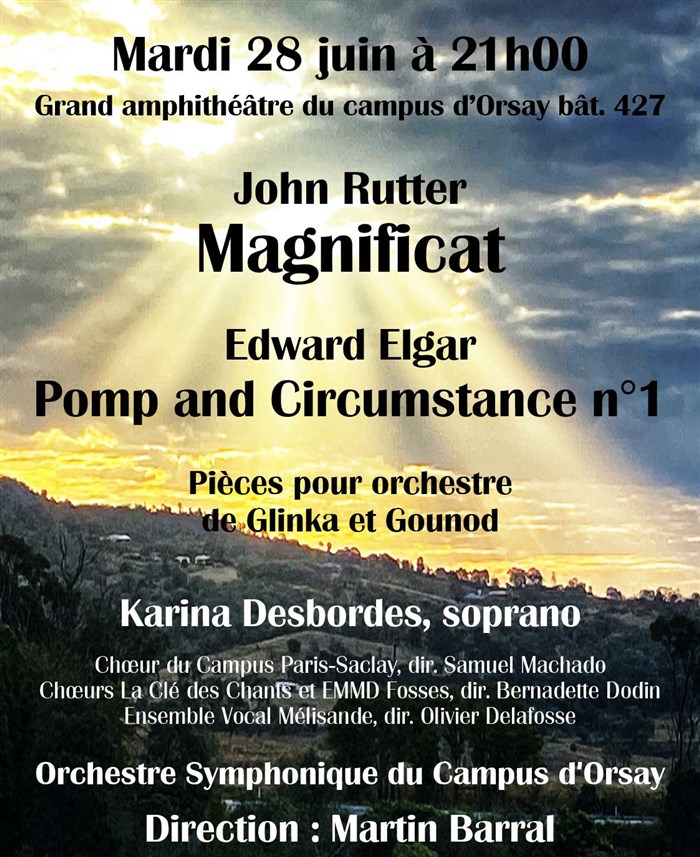 Karina Desbordes (soprano), Choeur du Campus Paris-Saclay, Choeurs La Clé des Chants et EMMD Fosses, Ensemble Vocal Mélisande, Orchestre Symphonique du Campus d'Orsay