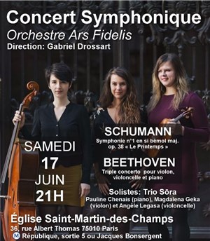Après la symphonie "le Printemps" de Schumann, l'orchestre symphonique Ars Fidelis accompagnera le Trio Sòra dans le triple concerto de Beethoven.
