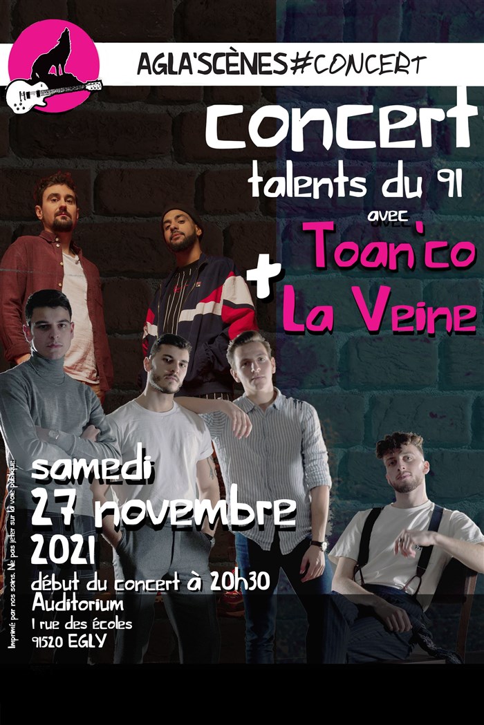 L’événement Concert Talents du 91 : Toan'Co et La Veine de type Pop / Rock / Folk, organisé ici :