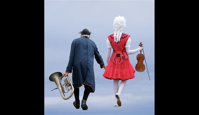 Des coussins de velours rouge sous un lustre d'opéra. On est au spectacle chez Les Rois Vagabonds. Un drôle de couple. Sur leur affiche, ils s'en vont avec, pour tout bagage, un violon et un vieux tuba. Et on a envie de les suivre.