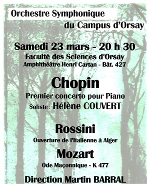 Tu veux savoir ce qu’ont pensé les spectateurs et la presse de cet événement : Concerto pour piano de Chopin - Grand amphithéâtre Henri Cartan du Campus d'Orsay ? Découvre leurs avis éclairés et prépare-toi à vivre un moment d’exception à ton tour en réservant tes places !