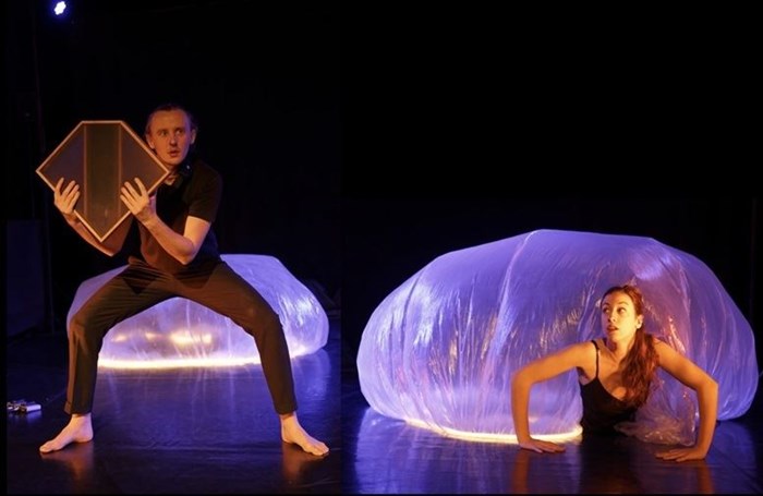 Au coeur d'une bulle aquatique et aérienne, deux êtres prennent forme et communiquent dans un univers imaginaire. Ils ne sont pas humains, n'ont pas de parole, mais développent un langage qui leur est propre. À travers le corps, les mouvements et les sons, ils dialoguent ensemble et s'apprennent tout en délicatesse. Un jeu nait entre légèreté et ondulations pour peindre un nouvel écosystème aquatique et aérien, musical et chorégraphique dans lequel grandit la relation entre ces deux êtres. Un spectacle inventif pour les tous petits, où le rapport à l'autre se créé par l'imaginaire au moyen de la musique et la gestuelle.