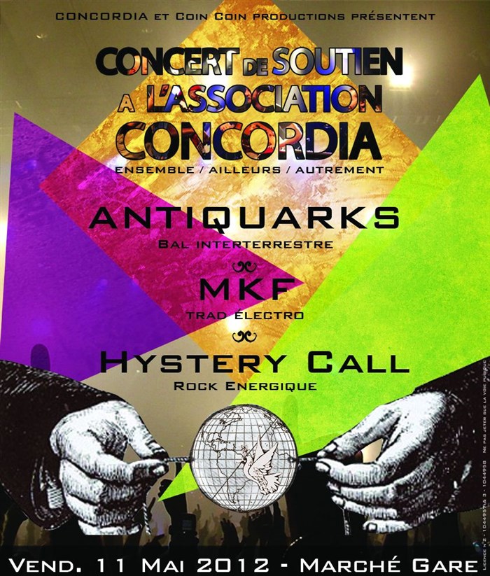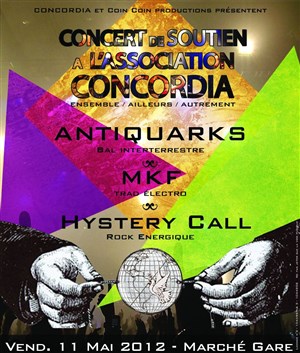 Accompagné par les groupes Antiquarks, MKF[trio] et Hystery Call, le 11 mai sera l'occasion de promouvoir les valeurs portées par les musiciens et l'association au travers d'un concert mêlant musiques éclectiques et chaleur humaine !