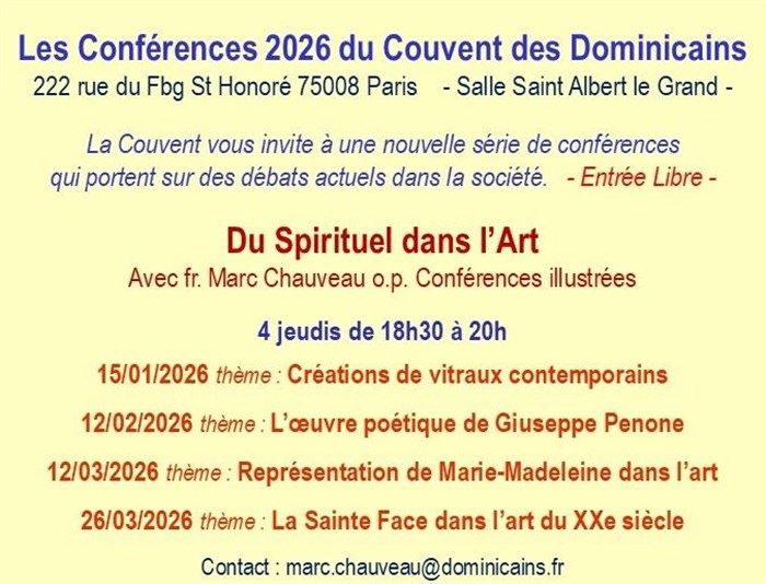 Découvre Conférence : La Sainte Face dans l'art du XXe siècle, qui fait partie de notre sélection d’événements de type Lecture / Rencontre / Conférence / Masterclass et qui se tient ici : Couvent Dominicain de l'Annonciation -