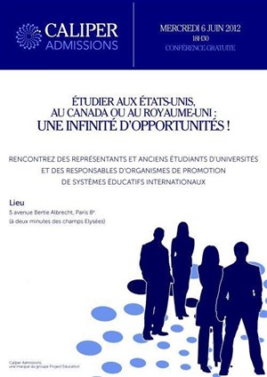 Rendez-vous incontournable pour les lycéens et étudiants attirés par l'international et leurs parents, la 1ère conférence organisée par Caliper Admissions se déroulera le 6 juin 2012 dans ses locaux du 8e arrondissement de Paris.
