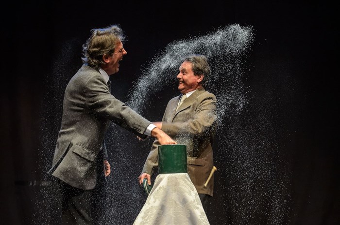 leur spectacle se présente sous la forme de saynètes sans paroles qui s'enchassent pour former un récit qui subvertit les codes des rapports humains. Un spectacle tout en finesse