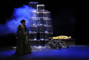 Avec pour seuls accessoires des cubes de plexiglas, on passe du château de rêve à la modeste chaumière, dans des contrées lointaines et des forêts brumeuses.