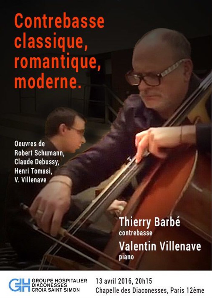 Contrebasse classique, romantique, moderne vec des oeuvres de Robert Schumann, Claude Debussy, Henri Tomasi, Valentin Villenave.