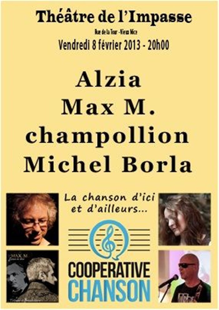 Un collectif de Musiciens qui propose de découvrir quelques uns de ses plus éminents membres : Max M., Michel Borla, Alzia, Champollion