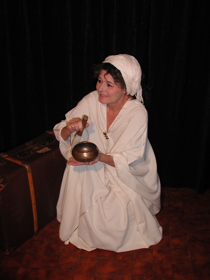 Elle entre dans le silence et l'obscurité. De sa valise s'échapperont, la lumière, le son.