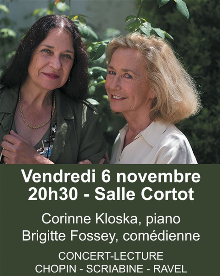 Corinne Kloska et Brigitte Fossey, vous proposent à un parcours musical et littéraire de Chopin à Ravel, en passant par Scriabine, le Chopin du XXe S