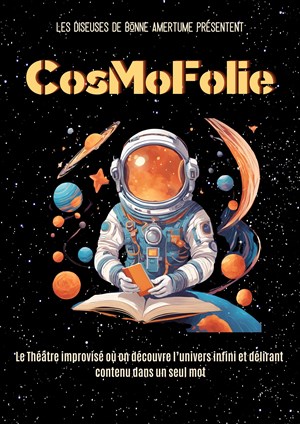 Bienvenue dans la constellation de CosMoFolie, un spectacle de théâtre improvisé où, en un instant, un seul mot devient la clé d'une multitude de mondes inexplorés. Chaque représentation est unique, car chaque mot lancé au début du spectacle ouvre un nouveau champ d'aventures, d'émotions et de découvertes.