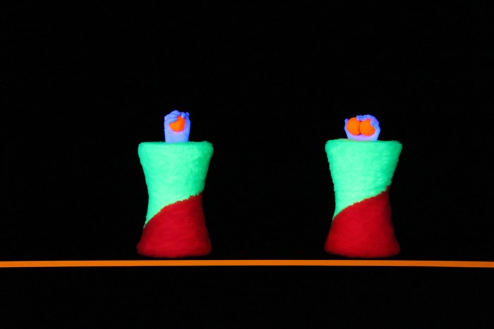 Un spectacle de marionnettes en lumière noire sans parole où la narration se fait par l'imaginaire merveilleux de chacun des enfants.