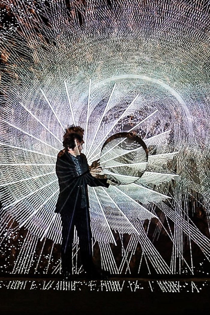 Ressentir autrement les notions mouvantes de temps et d'espace implique d'aller au-delà des mots. Là où notre esprit s'autorise enfin à la contemplation du chaos, à se laisser pénétrer de sensations puisées à des années lumières de notre quotidien. Accompagné de tambours, d'instruments lumineux, de vidéo-projections et de sons spatialisés, le musicien Cyril Hernandez déploie sous nos yeux six tableaux où sa musique, sa présence, la lumière et l'image viennent bouleverser notre perception sensible d'un univers dont nous ignorons tout.