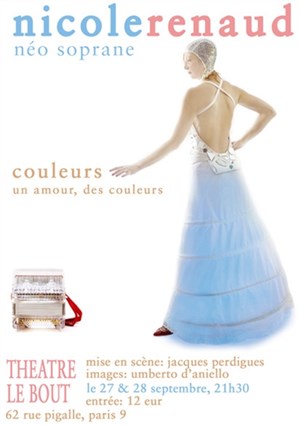 Newyorkaise d'adoption, Nicole Renaud vient présenter "couleurs", un voyage chromatiquo/poétique autour de l'Amour.