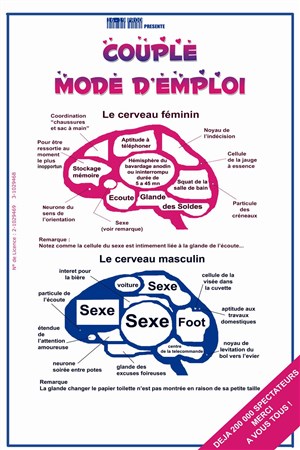 Pourquoi les femmes pensent-elles à voix haute ? Pourquoi les hommes veulent du sexe et les femmes du romantisme ? Vous aurez la réponse en venant découvrir cette comédie sur les petits travers du couple avec ses situations drôles et amusantes ! ...pour enfin comprendre le langage de l'autre.
