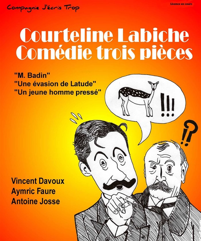 Courteline et Labiche, deux auteurs de la belle comédie "made in France", joués le temps d'une soirée par trois comédiens, pour trois pièces.