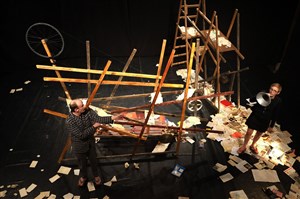 Il est pourtant difficile de rester sérieux quand deux clowns, qui croient tout savoir, se mettent à vous faire un cours. Un rempart de livres est dressé entre les personnages et le public, et comme dans une guerre des tranchées, celui-ci est bombardé de citations, de recueils de poèmes. Le rempart devient un réservoir à poètes, une réserve de munitions et le public repart armé, avec une langue vivante revivifiée...