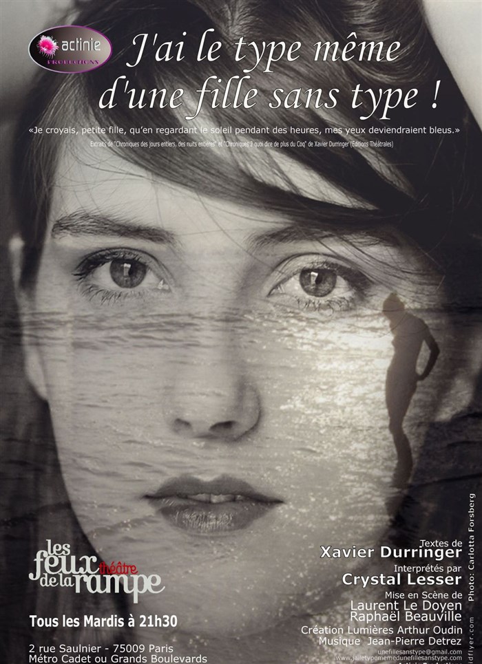 Il ne faut pas la râter ...Xavier Durringer étant à l'actu avec La Conquête au Festival de Cannes, allez découvrir ses mots dans la bouche de "Sylvie", personnage émouvant créer par Crystal Lesser. Elle nous transporte dans l'univers de cette jeune femme, paumée, meurtrie, et pourtant si forte avec beaucoup de talent et de passion !