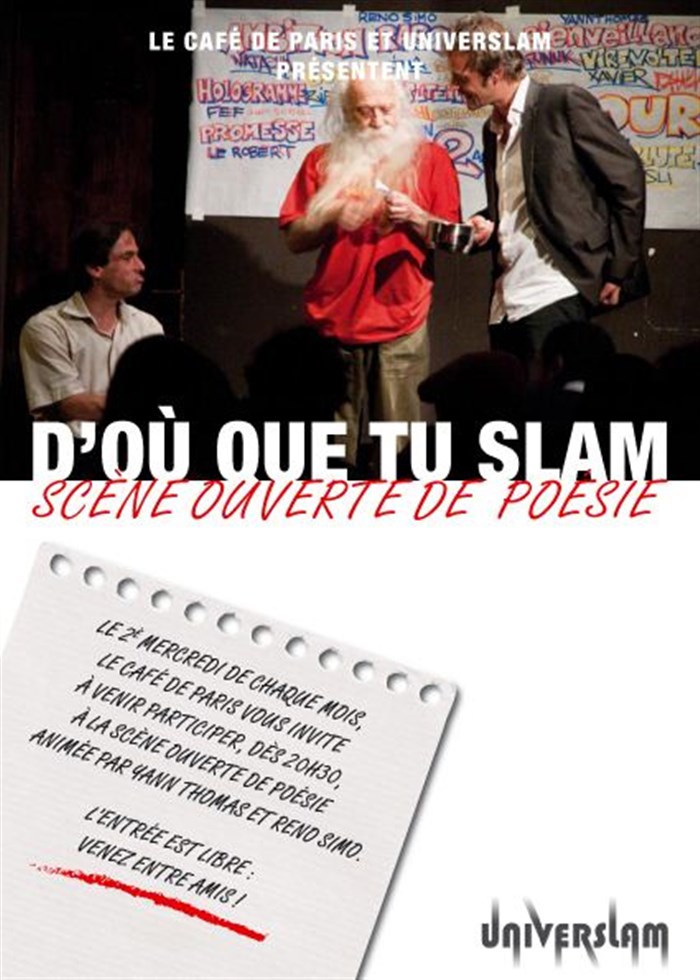 L’événement D'où que tu slam, scène ouverte de poésie au Café de Paris de type Atelier / Stage, organisé ici :