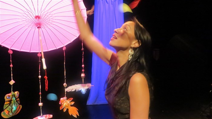 Sur scène, elle les entrelace avec simplicité et douceur. Sa belle présence éclaire les tout-petits comme les plus grands.