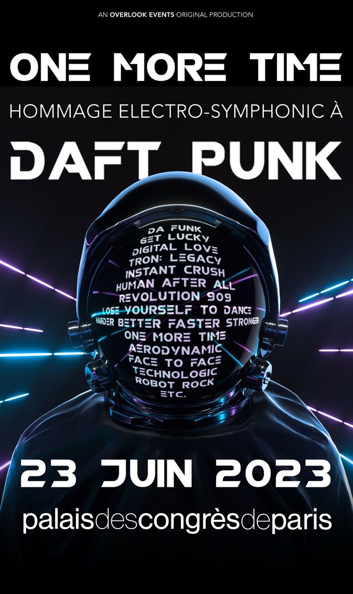 One More Time est l'expérience électro-symphonique inédite dédiée à l'un des groupes français les plus légendaires de son époque, avec plus de 50 musiciens sur scène pour un spectacle son et lumière hors du commun !