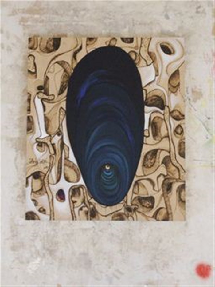 Daniela Lorini utilise comme moyen d'expression la pyrogravure et la peinture à l'huile sur supports en bois recyclé.