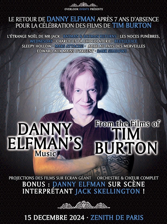 Après sept années d'absence, le compositeur culte hollywoodien Danny Elfman revient en France pour se produire sur scène, interprétant plusieurs chansons du film L'Étrange Noël de Monsieur Jack, en plus d'une rétrospective complète de ses musiques pour le réalisateur Tim Burton !