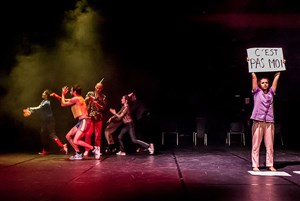 Le directeur d'un centre de reconversion pour danseurs a disparu ! Un des sept stagiaires est suspecté d'être responsable de cette disparition, sans doute celui qui a refusé de se recycler, d'évoluer. À vous de mener l'enquête... et soyez fin observateur car pièces à conviction, indices et preuves seront uniquement basés sur le mouvement. Lors des reconstitutions (différentes et loufoques à souhait) le coupable sera le seul à répéter exactement les mêmes gestes alors que tout change et s'agite autour de lui. Saurez-vous le repérer en observant dans le détail la partition de chaque interprète ? Cette pièce est un vrai jeu dansé, avec fausses pistes, malices, détournements d'attention et chorégraphies millimétrées autant que délirantes. Pourtant, n'en doutez pas, nous sommes bien au spectacle et il n'est pas interdit d'en profiter juste pour le plaisir, sans chercher à démasquer l'artiste criminel.