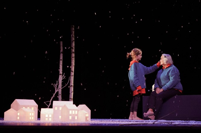 Avant de disparaître, une vieille dame va rendre ses chaussures à la petite fille qu'elle était... Se retrouvant toutes les deux dans cette pensée, elles essaient d'échapper au froid de l'hiver, de retenir le temps, leur souffle, la nuit. Alors elles racontent des histoires, comptent les moutons, récitent des poèmes et refont la genèse du ciel.