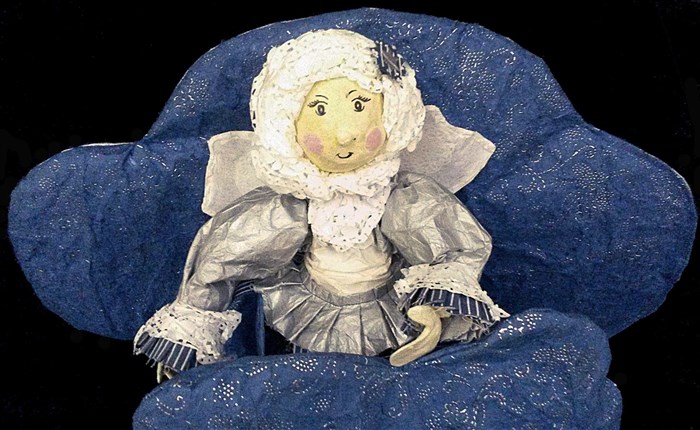 Une robe toute de papier, d'amples poches à surprises... Voici qu'aparait un petit délice, bonhomme de pain d'épices.