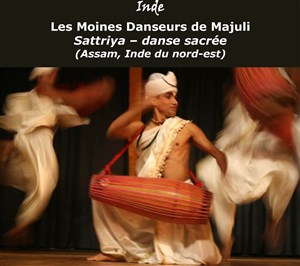 Passage à Paris du maître Bhabananda. Les moines-danseurs de Majuli se sont produits au Musée à Guimet en 2012 dans le cadre de leur tournée officielle en France. Collaboration avec l'association Sauver Majuli et l'Abbaye de Sylvanès.