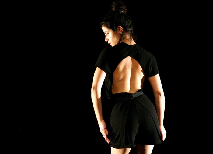"Mahalli" signifie en Arabe à la fois " local " (d'ici) ainsi que "ma place". Dans ce solo, il est question d'une figure, un corps comme masse mouvante, prise dans des espaces denses de plis et de cercles. Dans cet espace, dépourvu de points de fuite, le temps semble être plein. Le vis-à-vis de cette figure est l'ordre. En raison du mal et du danger environnants, cette figure est contrainte, pour survivre, de jouer la puissance. Dans ce travail, ma relation à l'espace est une relation au territoire. Par son instinct de survie, cette figure veut conserver son territoire, avant même de songer à agir sur les forces menaçantes de l'extérieur. Comme un animal, elle ne quitte son territoire que pour se ré-installer. Dans son déplacement, il y a une lourde retenue, une colère rentrée, méditée. Cette figure a la puissance d'une femelle et la fierté d'une femme. Au cours de ce projet, le corps a été considéré à la fois comme l'outil et comme la matière que cet outil travaille et façonne. Avant de donner à voir des mouvements et des idées, je tente donc de donner à voir un corps et, en l'occurrence, le mien. Car mon territoire, c'est d'abord mon corps."
