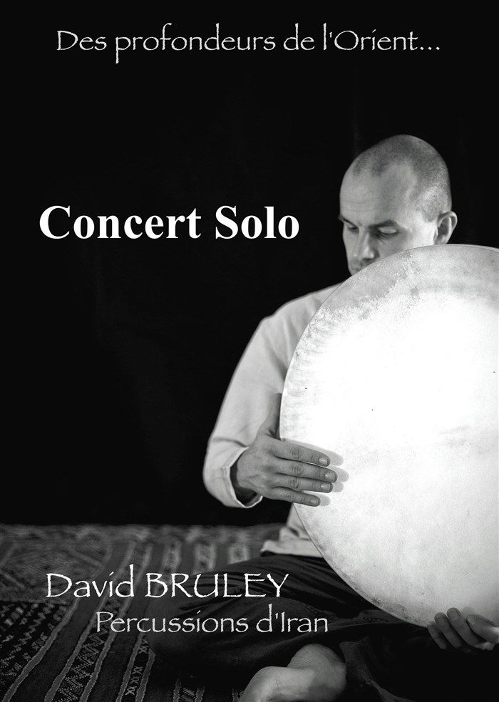Pour ce concert David Bruley présentera ses différents instruments iraniens, à savoir : le Tombak, le Daf, le Dayereh et les sang-e-sarangoshti (cymbalettes de doigts).