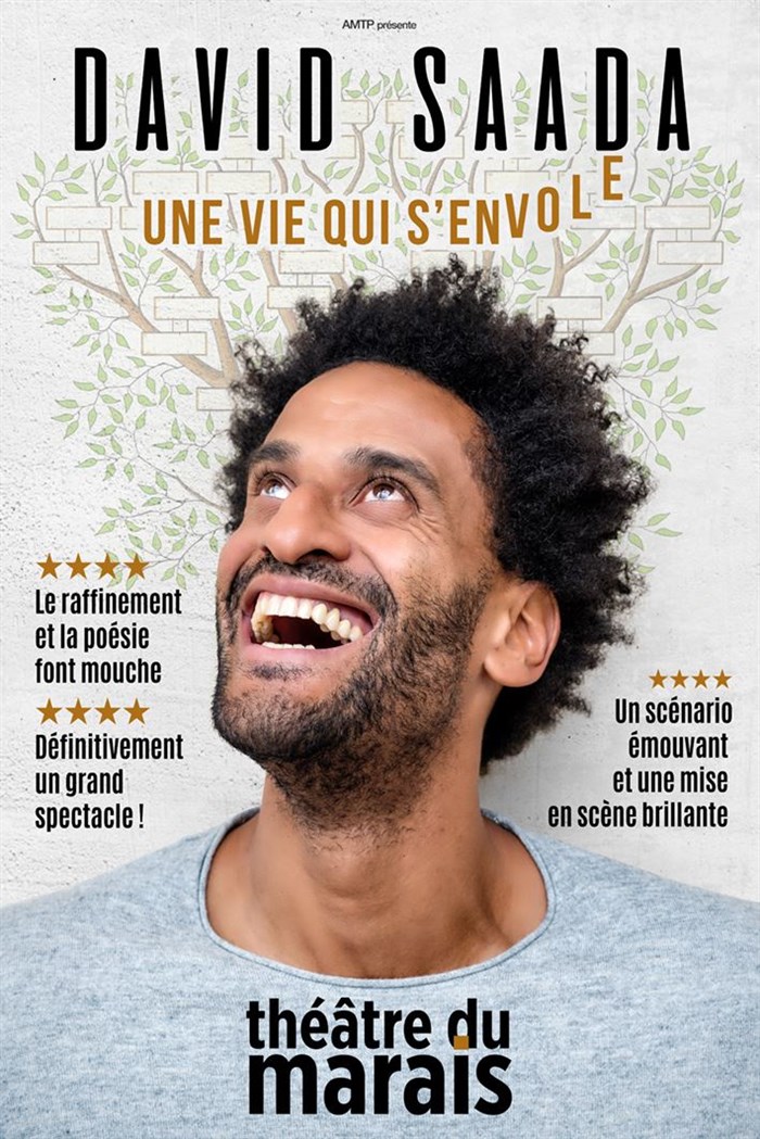 Un spectacle superbe qui ne ressemble à aucun autre. Une tendresse , une poésie distillée dans un texte béton, superbement bien écrit et servi par un artiste magnifique qui ne joue pas, mais VIT avec une vraie authenticité, l'histoire émouvante de sa propre existence.! DAVID SAADA est possédé par son personnage, qui est lui-même . Ses expressions et ses incessants déplacements, presque contorsionnistes sur une scène qu'il envahit avec une légèreté de danseur'sont dignes d'un mime . Mais ce serait dommage de nous priver du texte troublant. La mise en scène moderne et audacieuse est millimétrée, ainsi que les interventions de la voix of (Bravo a Aurélien, le super régisseur ) Tout est précis, résultat d'un talent, d'une maîtrise et d'un travail colossal. Des rires, mais surtout des émotions qui m'ont fait passer du rire aux larmes, faisant faire du trampoline à mon coeur, l'ascenseur émotionnel n'a cessé de fonctionner... Difficile de se lever et sortir de cette salle , oû on aurait entendu une mouche voler. Et encore après, j'ai du mal à me détacher de ce personnage un peu irréel, comme un ange qui survole son passé en le dépassant. . Le message est tellement positif! Malgré une vie mal commencée, et d'autres situations que l'on peut supposer mortelles pour l'amour et pour l'espoir, le temps et la confiance en la vie permettent d'atteindre le bonheur, d'aimer de nouveau, encore plus fort ......, en laissant la vie s'envoler.....