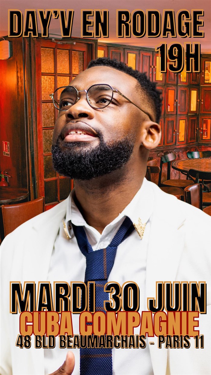 Découvre Day'v en rodage, qui fait partie de notre sélection d’événements de type Stand up et qui se tient ici : Cuba Compagnie Café -