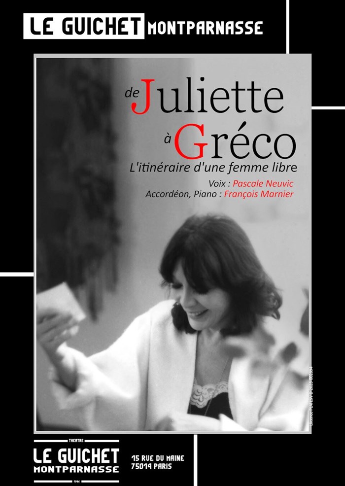 Voir plusOui, quelle magnifique surprise que ce spectacle ! J’y allais sans a priori, sans savoir ce que j’allais découvrir, avec juste l’envie de découvrir. Un montage subtil, une interprète, Pascale Neuvic, délicate, à fleur d'émotion, qui vibre à l’évocation de la femme libre qu’était Gréco. Ce voyage de Juliette à… Gréco m’a littéralement conquise, j’ai aimé aussi la sobriété et la justesse du duo formé avec le discret François Marnier au piano et à l’accordéon. Au fil du spectacle, se dévoile une artiste sensible et les chansons de Gréco soudain touchent comme jamais. Merci pour ce bel hommage si admirablement servi ! Un spectacle à ne pas manquer. Un spectacle à revoir.