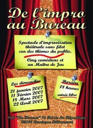 Les comédiens improvisent sur des thèmes que le public écrit sur un morceau de papier qui lui est remis à son arrivée. Un mot, une phrase, le papier tiré au hasard, et l'impro démarre.