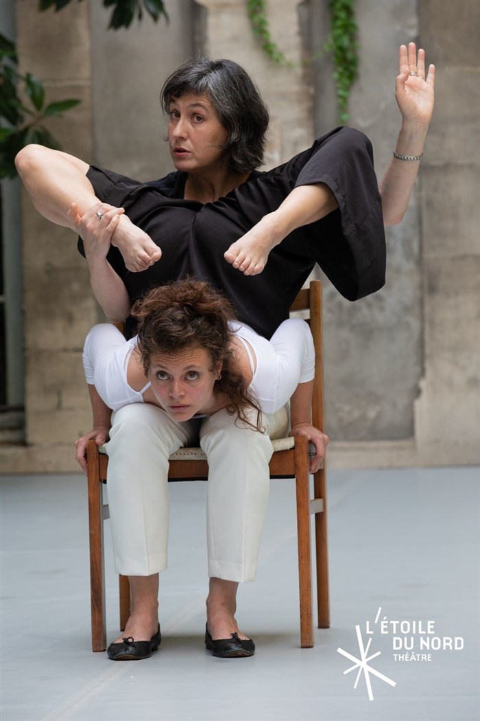 Croisant deux langues, l'espagnol et le français, et deux pratiques, l'acrobatie et la littérature, dans un territoire où il n'y aurait qu'une seule chaise à partager, Violaine et Victoria seront hôte et hôtesse l'une et l'autre, pour mettre en corps et mots l'acte d'accueillir l'Autre. Ou non. Ou peut-être. Et comment ?