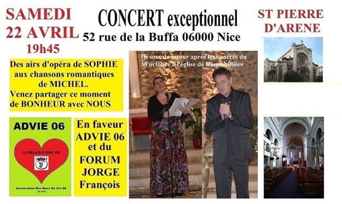 Concert des deux parrains de l'association Advie 06 que sont la soprano Sophie Monaco et le chanteur Michel Monaco (pas de parenté).