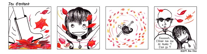 Dans un premier temps on invente son personnage (imaginaire ou réel). Ensuite on écrit une histoire sur le principe du strip, 3 cases pour amener à une chute en 4ème case. Crayonné, encrage et couleur. Tout le monde repart avec sa petite BD !