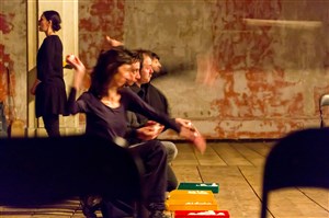 Souvent Adeline Rosenstein est derrière son pupitre, occupée à nous communiquer ce qu'elle a pu rassembler et ce qu'elle a pu comprendre : faits, cartes, arguments. Mais souvent aussi, elle laisse la scène à ses acteurs pour des saynètes, issues entre autres de pièces arabes inconnues ici, qui reconstruisent autrement dans l'espace les questions que pose et se pose la conférencière.