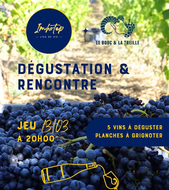 Tu veux savoir ce qu’ont pensé les spectateurs et la presse de cet événement : Dégustation & rencontre : vignoble Le Bouc et la Treille - Imhotep Bar ? Découvre leurs avis éclairés et prépare-toi à vivre un moment d’exception à ton tour en réservant tes places !