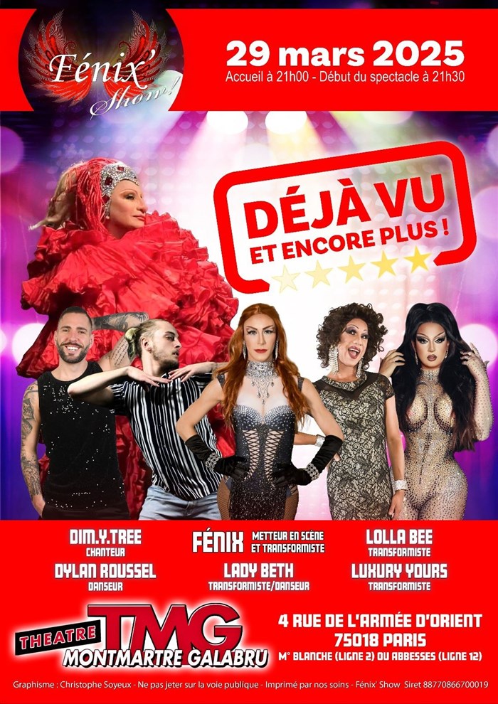 Une très belle soirée de partage de la passion que mettent l'ensemble des artistes de la troupe qui accompagne Fenix. Chanteur, danseur, drag et artiste aux multiples facette nous offre une soirée lors de cette dernière ou l'on oublie son quotidien pour s'embarquer dans leur univers. Merci à eux, et un grand M.. pour le spectacle à venir en avril.