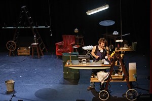 Le clown-scientifique, drôle, décalé, jovial et énergique, se met alors à réparer chaque objet pour continuer de jongler entre les objets volants.