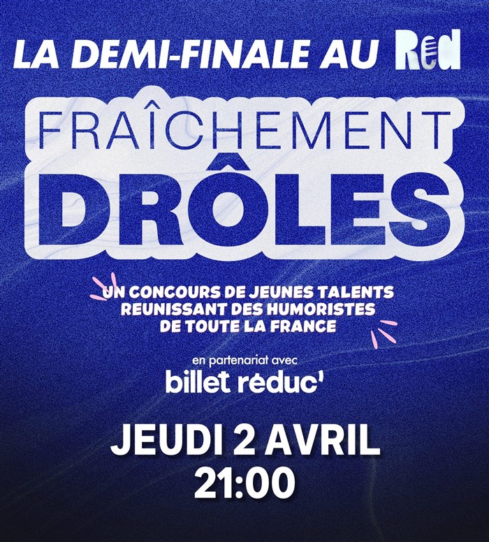 Découvre Demi-finale Fraîchement Drôle, qui fait partie de notre sélection d’événements de type Humour et qui se tient ici : Red Comedy Club -
