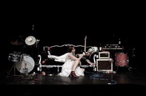 Charly Chanteur devient un vrai groupe, il se dédouble fille-garçon à quatre mains... Une guitare électrique et une batteuse !