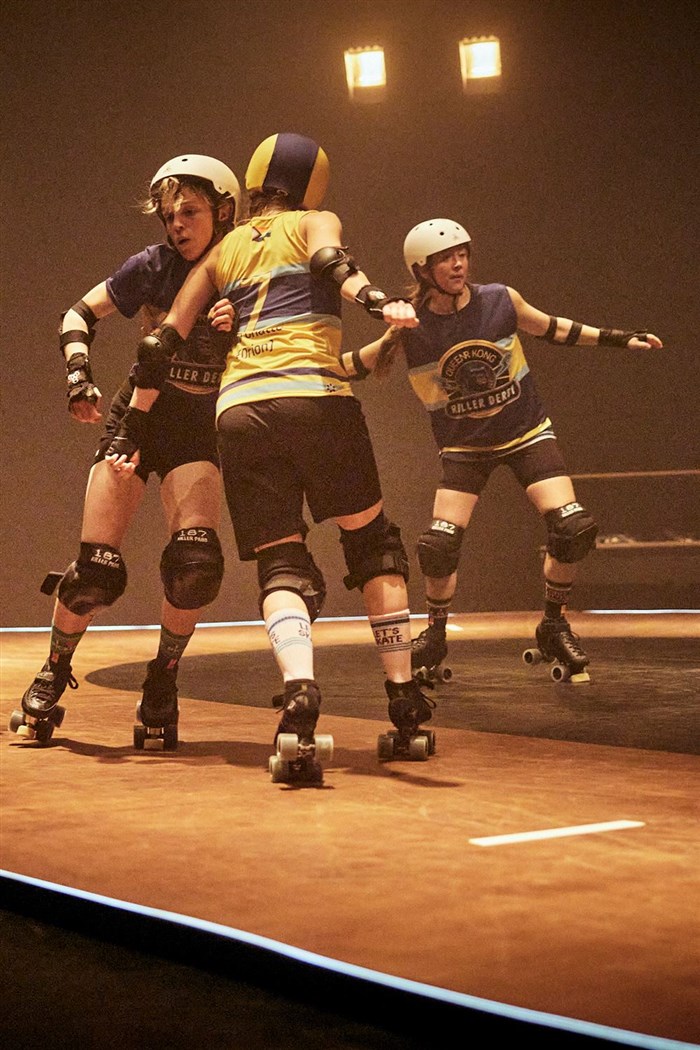 Roller Derby : sport féminin de contact. Derby capture sur scène l'énergie, l'exaltation et l'esprit rebelle de ce sport vibrant et féministe.