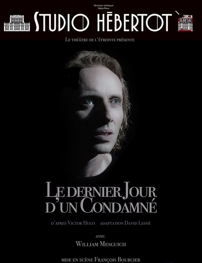 L'avocat élève la voix, off, dans le théâtre encore éclairé. Il conseille à son client de plaider coupable pour sauver sa tête. L'accusé se rebelle : que veut dire la perpétuité quand on a toute la vie ? Le verdict tombe. Une nouvelle vie commence, terrible, jusqu'à la peine annoncée. À la fin du spectacle, le condamné gît au sol. Un autre avocat élève la voix. Nous sommes le 17 septembre 1981. Maître Badinter demande à l'Assemblée Nationale l'abolition de la peine de mort en France. Entre les deux, le héros de Hugo vit devant nous la lente agonie de tout espoir en lui. Son propre deuil et celui des siens avant même que d'être mort. La mise en scène de François Bourcier ouvre le texte de Hugo et la cellule du condamné au public pour un huis-clos proche et intense. Le dialogue intérieur du héros adapté par David Lesné affûte celui de nos âmes avec celle du condamné : que sont nos angoisses face à la panique d'une mort annoncée ? William Mesguich excelle à partager le vertige et la pesanteur d'un fil tendu vers le couperet final. Avec d'infinies nuances, nous voyons son âme se vider de sa substance jusqu'à devenir le pâle reflet d'un être absent à lui-même et retiré au monde. Comment vivre ce châtiment d'un homme par les autres hommes quand on a une mère, une femme, une fille de 3 ans ? Comment ne pas juger la barbarie de tous quand on a soi-même jugé la sienne ? Le miroir nous est tendu. Il faut voir et entendre cette pièce, capitale.